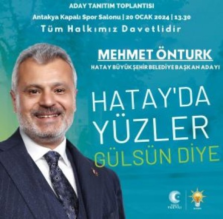 Cumhur Ittifaki Hatay Büyükşehir Belediye Başkan Adayımız Sn. Mehmet ÖNTÜRK beyefendinin aday tanıtım toplantısına tüm basın mensuplarımız davetlidir.