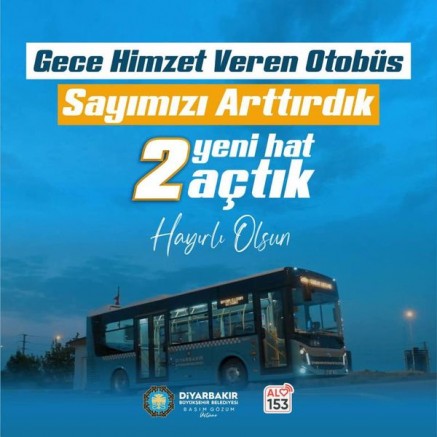 Diyarbakır Büyükşehir Belediyesi halkın hizmet etmek için gece otobüs seferleri açılmıştır