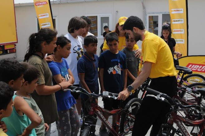 başlanarak, depremden etkilenen bölgelere özellikle çocukların ortak kullanımı için bisikletler