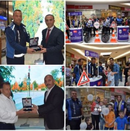 “Trafik Haftası” etkinliğinde; görevlerinde trafik kurallarına uyarak örnek davranışlar sergileyerek onur ödülüne layık görülen Yılın Zabıta Trafik Amiri Uzay Dinçer'e başarı plaketini; İskenderun İlçe Emniyet Müdürü Nevzat Güneş takdim etti.