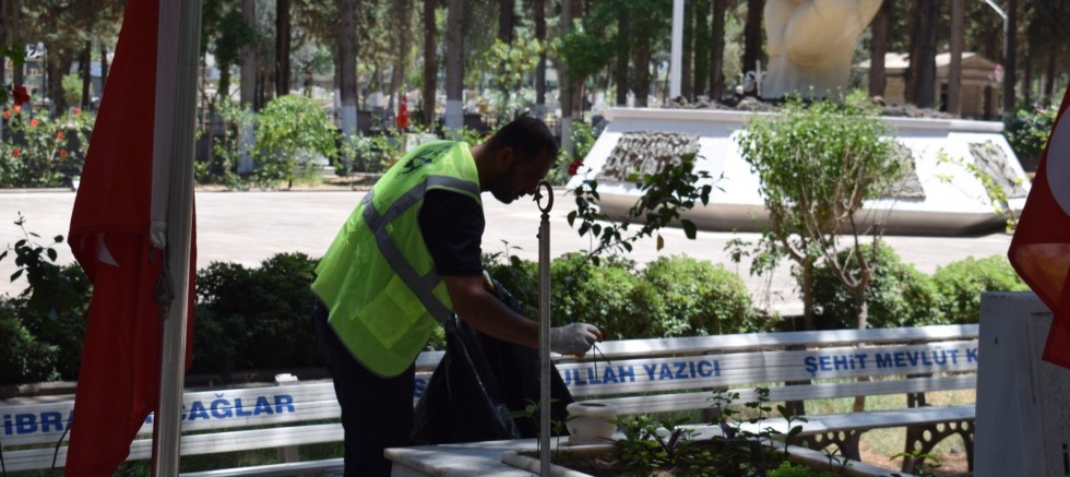 Büyükşehir ekipleri; 15 ilçede mezarlıklarda budama, yabani ot temizliği, tadilat, boyama ve çevre temizliği çalışmaları gerçekleştirerek ziyaretçilere daha güvenli ve sağlıklı bir ortam sunuyor.