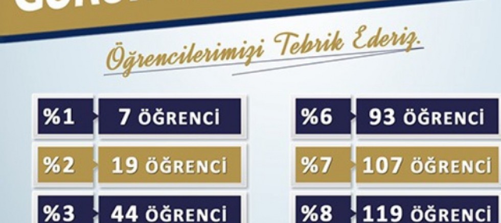 İnsan Kaynakları ve Eğitim Dairesi Başkanlığı tarafından verilen kurslarda sınavlara hazırlanan öğrencilerden 7 öğrenci % 1, 19 öğrenci % 2, 44 öğrenci % 3, 55 öğrenci % 4, 70 öğrenci % 5, , 93 öğrenci % 6, 107 öğrenci % 7, 119 öğrenci % 8, 136 öğrenci % 9 ve 158 öğrenci de % 10’luk dilime girerek büyük bir başarıya imza attı.