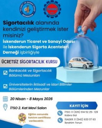 20 Nisan – 08 Mayıs 2026 tarihleri arasında İTSO 2. Kat Mavi Salon’da gerçekleştirilecek olan eğitim