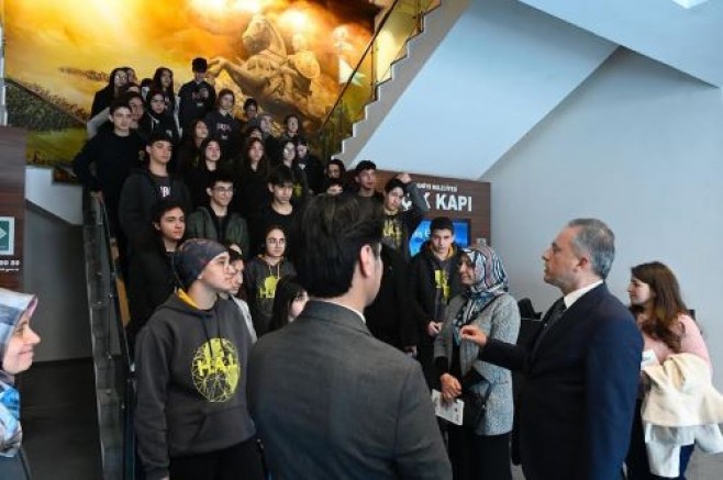 uğurlu olmasını dileyerek, ziyarete gelen 9. Sınıf öğrencilerine kitap hediye etti.
