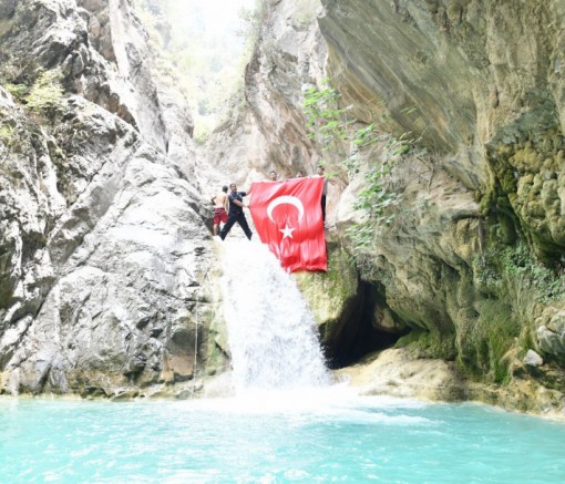 Kanyon geçişi sırasında dağcılık ve zipline yöntemleriyle 30 metrelik şelaleden güvenli iniş gerçekleştiren Başkan Çenet, bölgedeki kükürtlü su kaynaklarının analiz edilmesi için tahlil yapılması talimatı verdi.