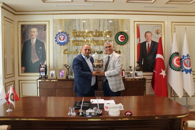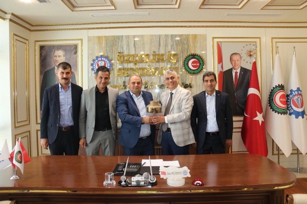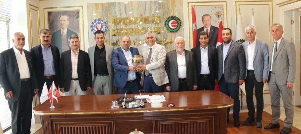 Özçelik-İş Sendikası İskenderun Şube Başkanı Mehmet Güngör ve şube yönetim kurulu üyeleri 15 .Olağan Genel Kurulda güven tazeleyen Genel Başkan Yunus Değirmenci ve Genel merkez yönetim kurulu üyelerine hayırlı olsun ziyaretinde bulundular.