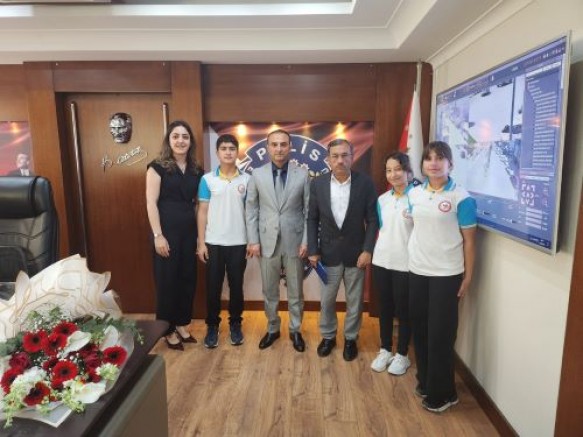 unus Emre ortaokulu müdürü ,rehberlik öğretmenleri ve üç öğrenci müdür beyi ziyaret etti 23 Nisan için.emniyet müdürü koltuguna oturdu telsizden anons ettı, koltuğa oturan ögrencinin adı Abdurahman Enes Ertuğrul