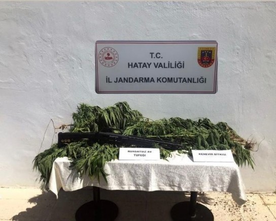 Hatay İl Jandarma Komutanlığınca Uyuşturucu madde kaçakçılığı ile mücadele kapsamında yapılan çalışma sonucunda Defne İlçesi koçören mahallesinde ikamet eden Ö.D isimli şahsın zeytin bahçesinde Defne İlçe J.K.lığı ekiplerince 28.08.2022 tarihinde yapılan aramada boyları 1 metre ile 2 metre arasında değişen 169 kök kenevir bitkisi ve 1 adet ruhsatsız av tüfeği ele geçirilmiş olup, Ö.D isimli şahıs gözaltına alınarak adli ve idari işlemlere başlanmıştır.