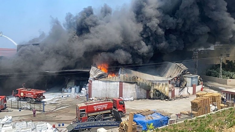 Karaağaç ve Nardüzü mahalleleri sınırındaki firmaya ait, pamuk, kereste ve plastik ham madde bulunan antrepoda çıkan yangın söndürüldü.